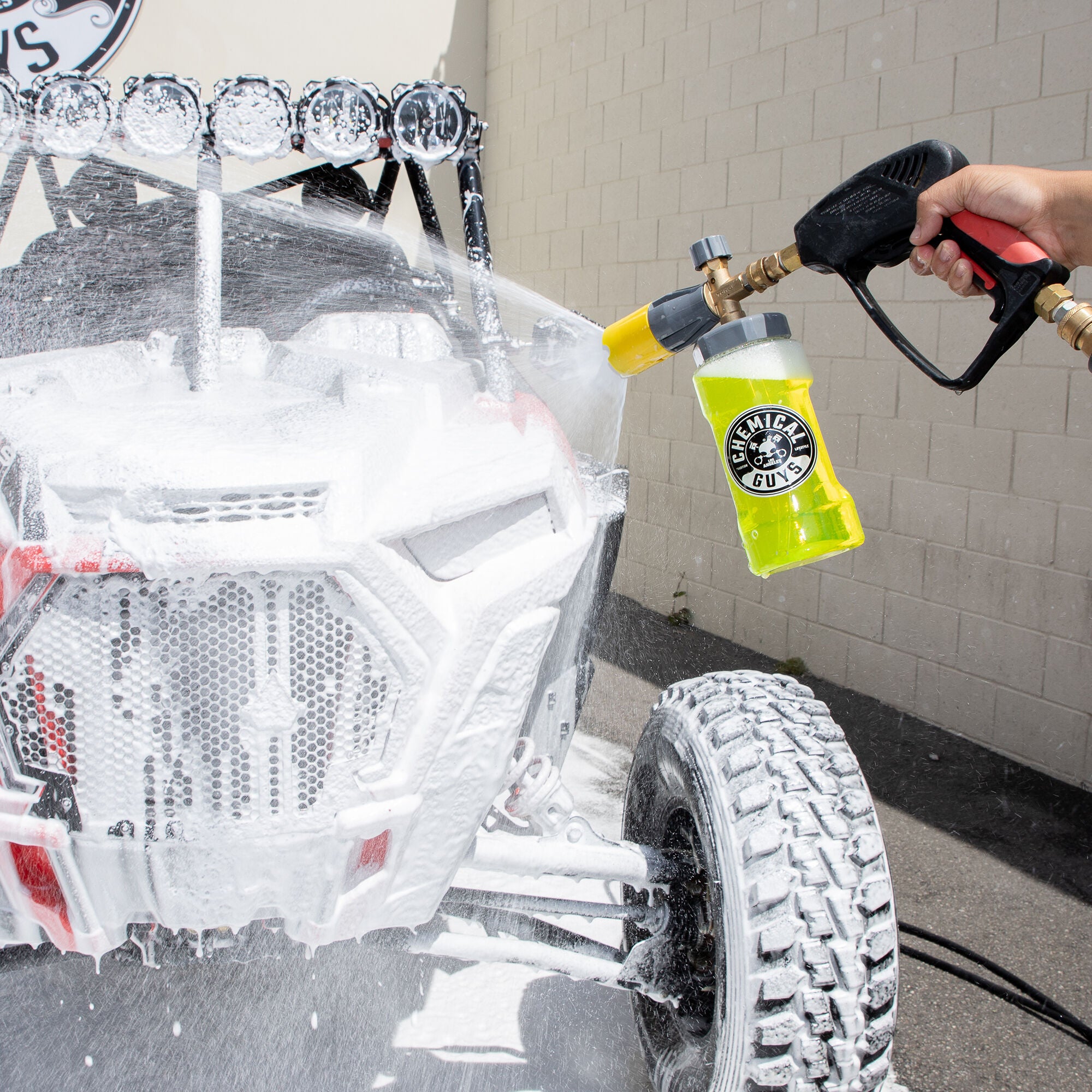 Upgrade your cleaning routine with the TORQ Big Mouth Max Release Foam Cannon. Its fully adjustable foam stream produces thick. fluffy suds that reduce the chances of swirls and scratches and coats your exterior with soap for an effective deep clean.