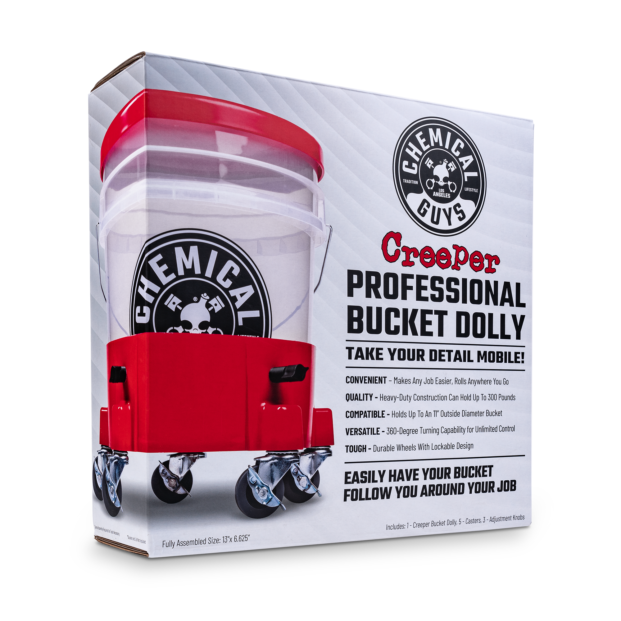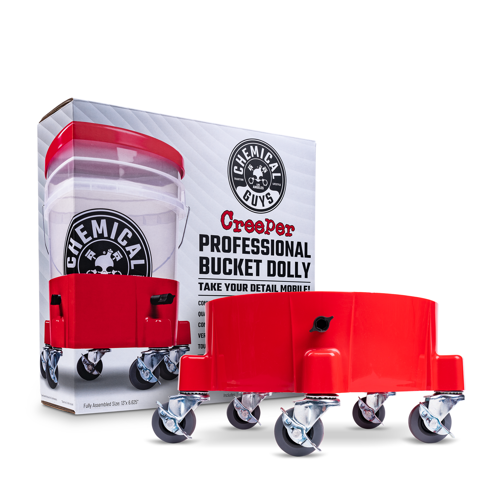 The Creeper Professional Bucket Dolly features five swivel wheels and fits buckets from 3.5 to 7 gallons. keeping your work bucket at your side as you do your detailing.