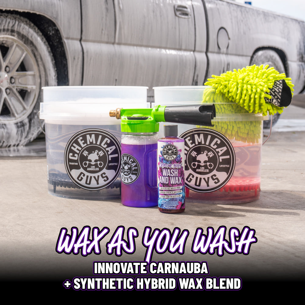 Experience the power of Extreme Bodywash & Wax: a premium car wash soap infused with dual waxes for a gleaming shine and unbeatable protection against the elements.