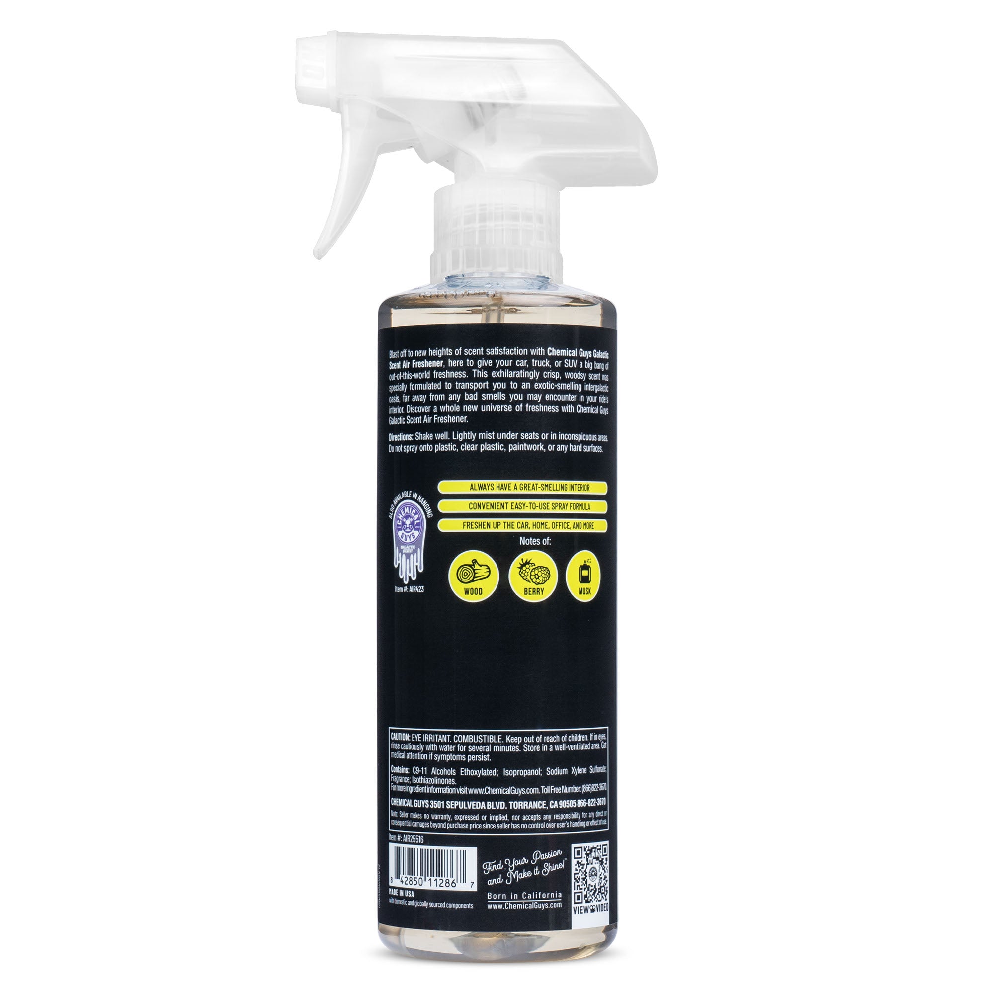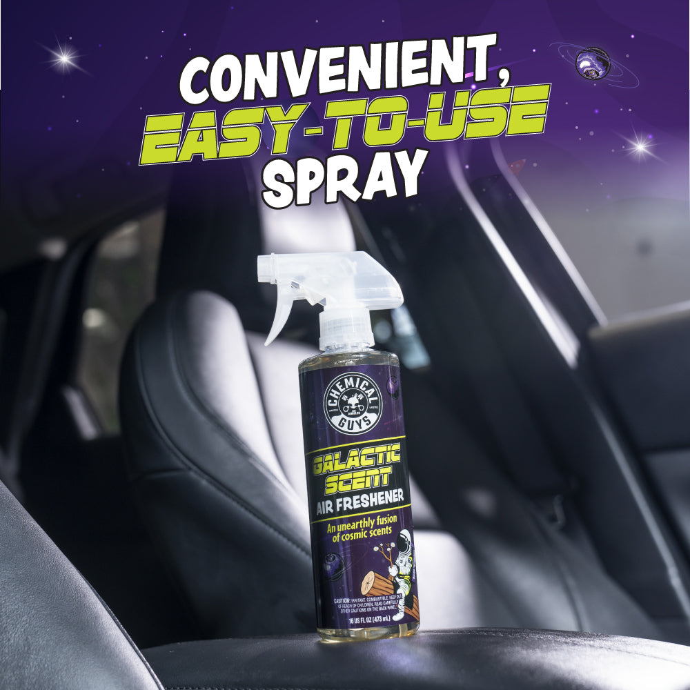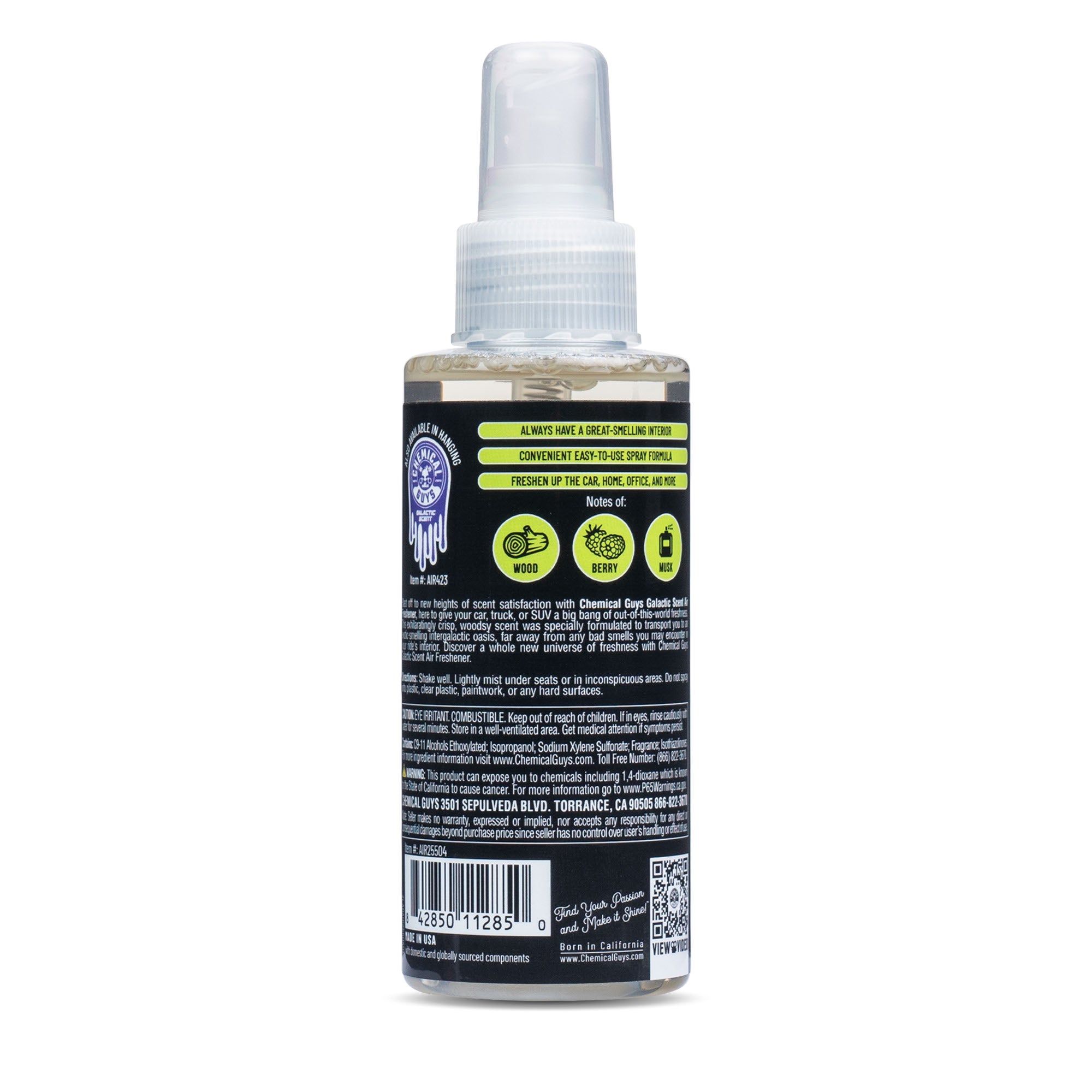 Blast off to new heights of scent satisfaction with Chemical Guys Galactic Scent Air Freshener Spray. This exhilaratingly crisp. woodsy scent is specially formulated to transport you to an exotic-smelling intergalactic oasis. far away from any bad smells you may encounter in your ride’s interior.??