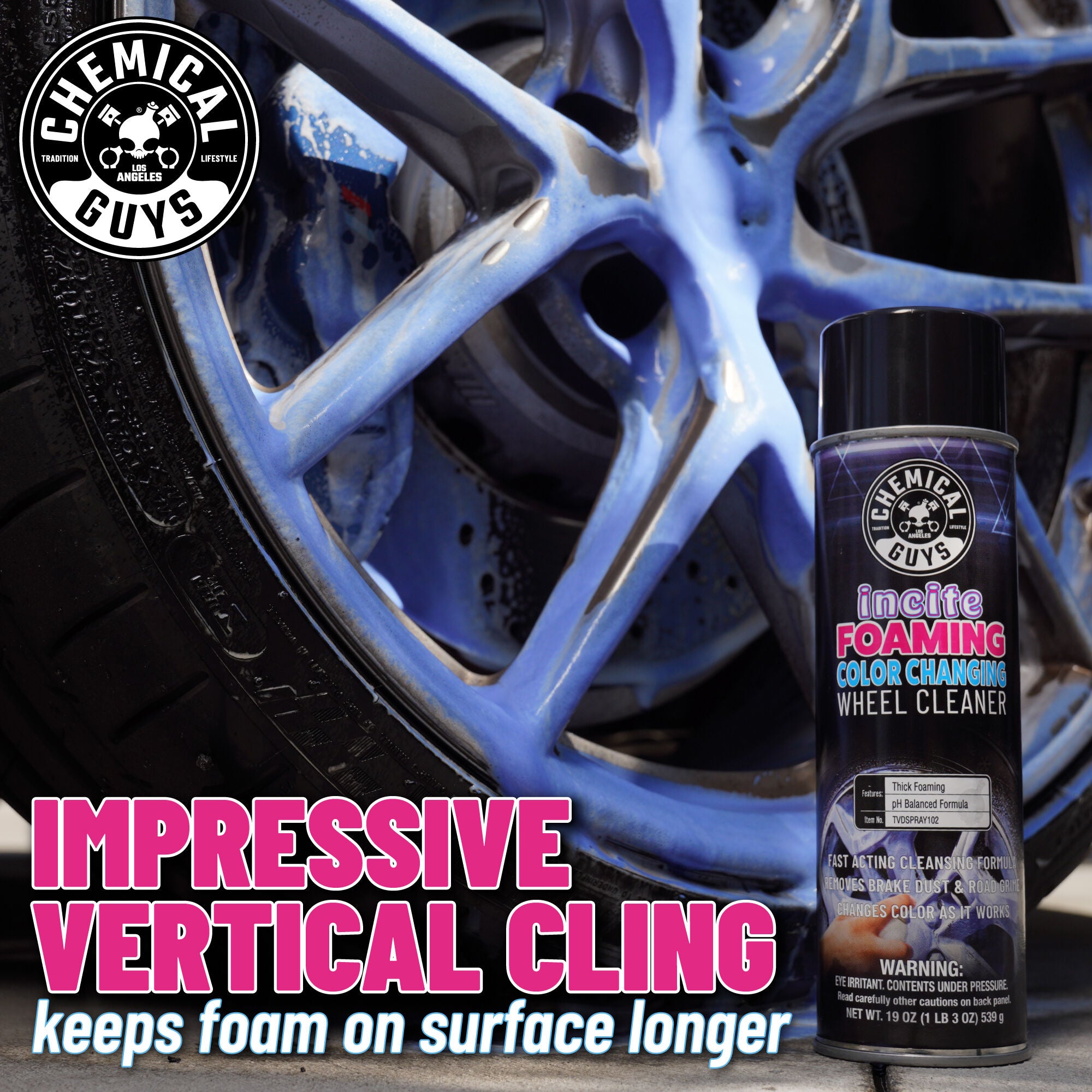 Incite Foaming Wheel Cleaner is a color-changing foam that makes for effortless restoration and maintenance of your wheels. Just spray it on and watch as it magically removes dirt. grime. and brake dust.
