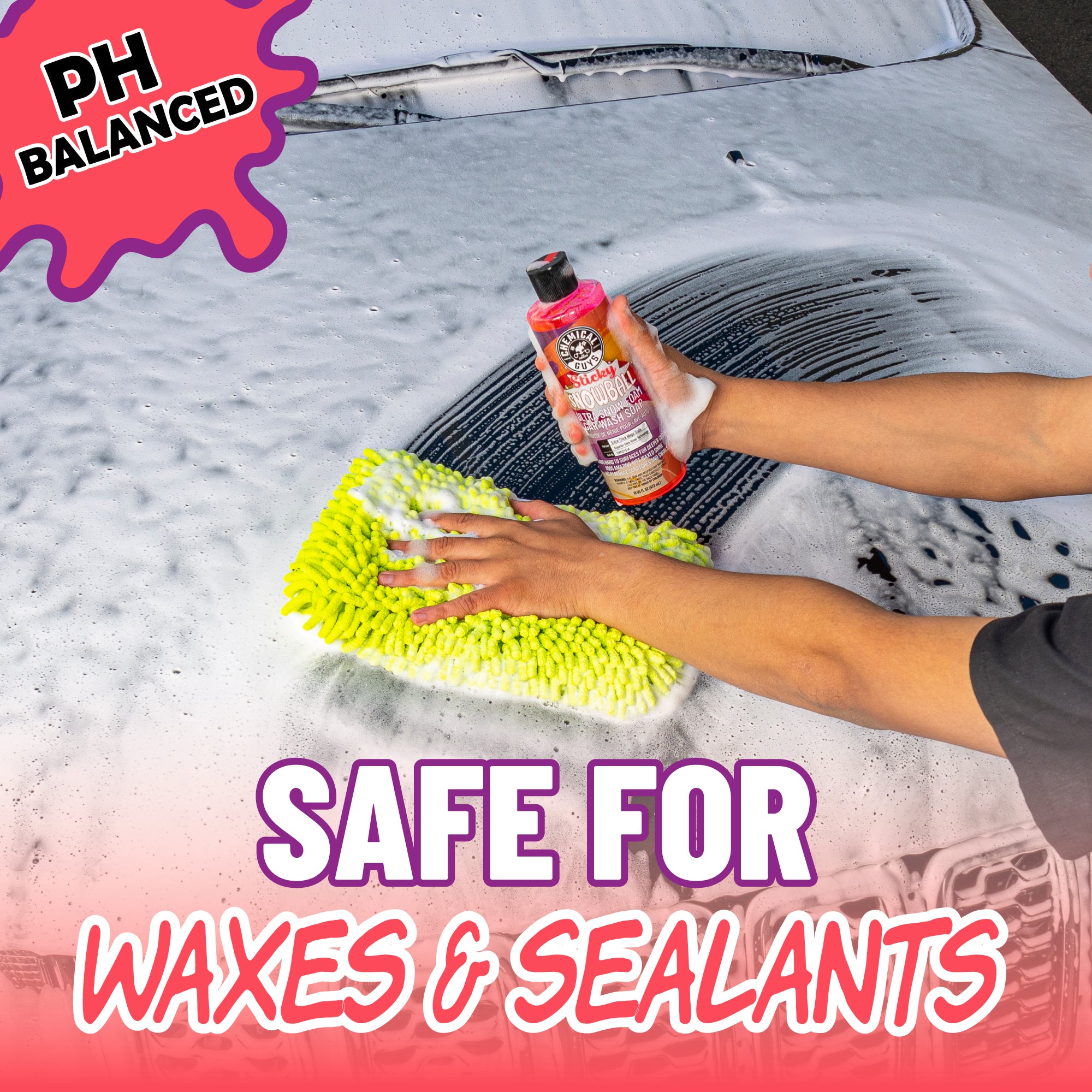 Sticky Snowball car wash soap creates the densest foam. It produces amazingly thick suds that maximize surface contact time to grab and suspend grime and dirt on your vehicle.